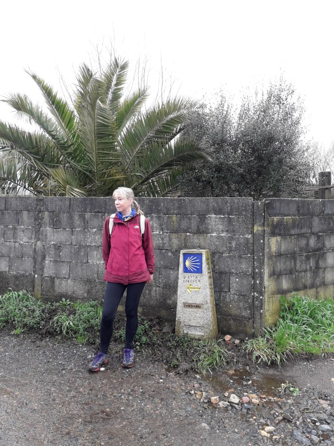 Approaching A Calzada the weather was so bad, we took shelter under a tree. There were other walkers, one an Australian man, we had met further back in other towns. After discussing the weather, our blisters, stories of one walker getting frostbite back in the Pyrenees, our conversation compared the weather to life and the Camino, there are good and bad times, but we must press forwards.